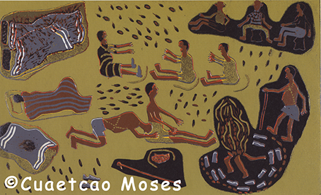 Människorna fortsätter dansa sin flod och det enda som hörs är trampet av många fötter och i bakgrunden de två synkoperade trummorna.