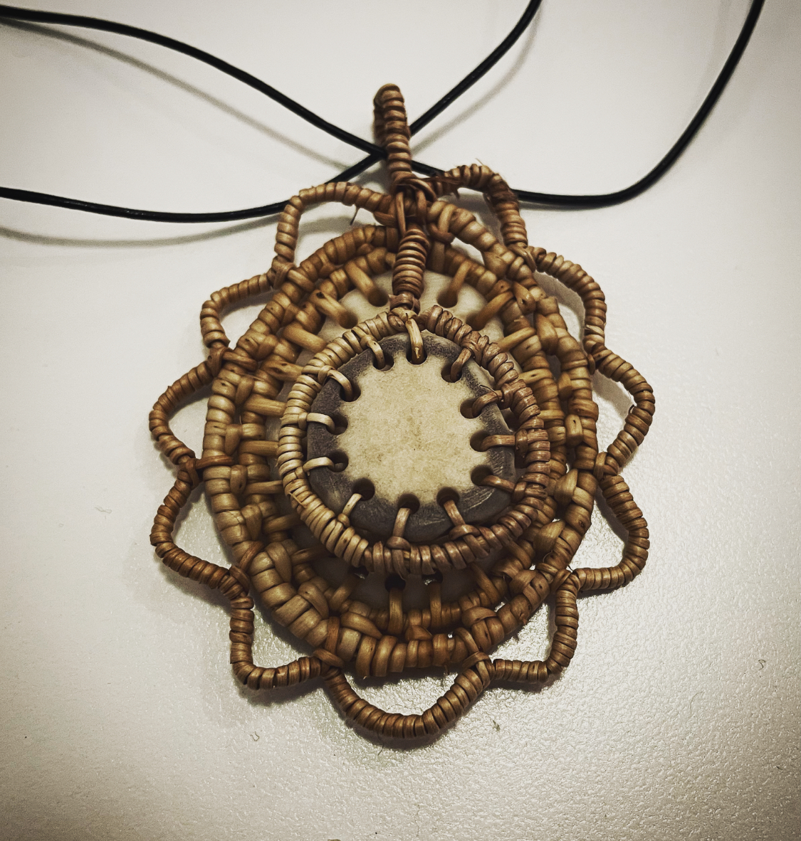 Idag gick jag tillbaka till mina rötter. Det är inte tänkt som en tramsig ordvits, men tangerar det ändå. Jag testade på västerbottnisk rotslöjd. Mina förväntningar var till en början låga, men det gick snabbt över i takt med varje varv jag virade den tunna roten. Varv efter varv medan sax, nålar och vänlig jargong flög fram och tillbaka över bordet. Tio personer samlades runt ett fårat bord, med en handduk, en kniv och en skål med vatten vardera. Och så rötterna. Långa, smala rötter, uppfiskade ut de västerbottniska myrarna. Den fuktiga marken bjuder inte något motstånd, så rötterna kan växa sig långa och raka utan många sidoskott. Med ovana händer delade vi millimetertunna rottrådar på längden, förundrades över hur vi kunde styra tjockleken på halvorna med endast trycket av våra tummar. Lyckades, utan att förstå hur eller fysiken bakom. Bara att det är så man gör och så man alltid gjort. Traditionens befrielse från att behöva kunna förklara allting. Vi fäste stödtåga och ledtåga och virade de tunna rötterna kring skivor av älghorn. Vi gjorde berlocker för att hinna bli färdiga under kursens gång. Medaljer vi skapat åt oss själva för att vi lyckats med vår föresats att lära oss slöjda med rötter. Jag hann prova många olika tekniker, och improvisera lite själv på vägen. Efter kursens tre timmar kände jag mig drägligt rustad att kunna fortsätta på egen hand.