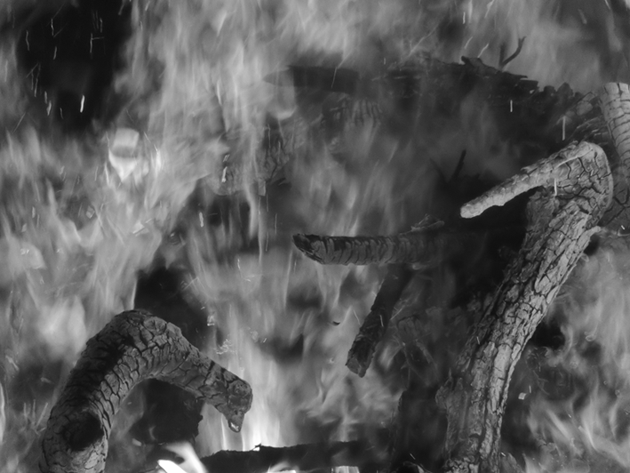 Jag blickar ut i mörkret genom svettens öppning. Glödbädden, där de heta stenarna ännu ligger, lyser som ett öga. Som en öppning mot magman i jordens varma inre. En efter en kommer mina systrar in, bärande heta stenar, det blir snart behagligt varmt. Jag andas in den varma doften av salvia, tobak, sweetgrass, barr och mineral. Hela kroppen andas. I ljuset av de glödande stenarna skymtar jag svettens träkonstruktion, Moder Jords vita revben. Dörren stängs, värmen, dofterna, mörkret sluter sig om mig. På helig plats, i helig tid, naken omjordad av Moder Jords livmoder.