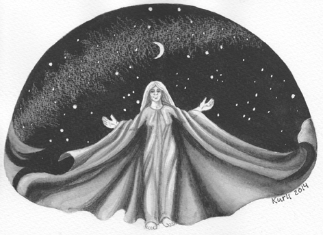 Men ”himmelens drottning” var från början inte bara en hederstitel. Himladrottningar var de gudinnor som människorna föreställde sig verkligen rådde över universum, först och främst över de olika rörelserna på stjärnhimlen. När himlavalvet med sina stjärnor och planeter rör sig skapas tidens gång. Tidens gång hör intimt ihop med händelsernas gång. Den som rådde över himlavalvet var också den som rådde över det som skulle ske, så himmelens drottning var därför också ödesgudinna. Eftersom universum verkar styras eller regleras av olika lagar så att himlakropparna rör sig i bestämda mönster och cykler, blev denna kosmologiska härskarinna inte bara ödesgudinna utan också den som satte upp alla lagar: hur människorna ska bete sig, hur träden ska gro och hur sol och måne ska löpa.